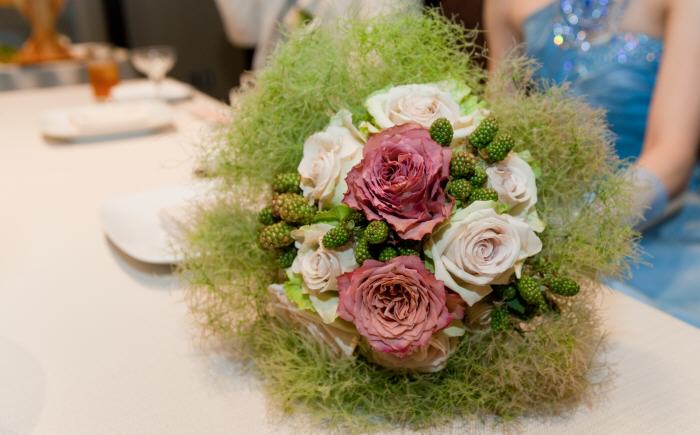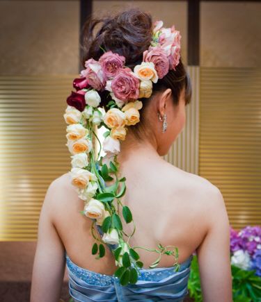 ひとたび手にかかれば花たちがいっせいに勢いを持ち始める。花それぞれの持ち味が見事に踊り出てくるその芸術は人々の感動を呼んできた。カップル1組1組のイメージをテーマにオーダーメードのト-タルコーディネートをデザインします。